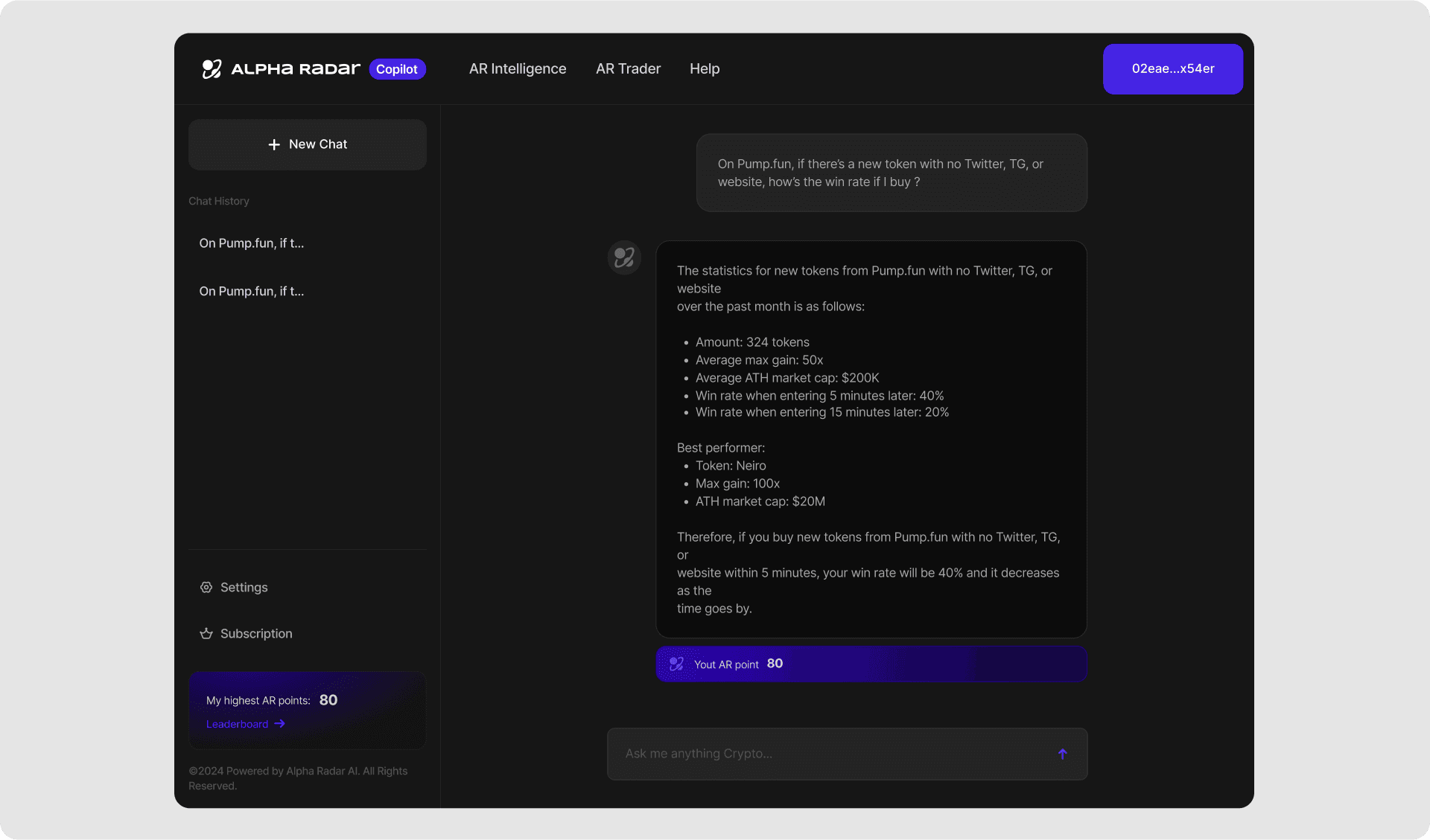 Discover crypto alpha with Alpha Radar’s AI, uncovering real-time on-chain opportunities and automating trades for market success.