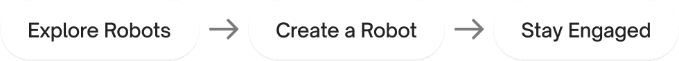 Broke engagement into small, easy steps: daily login, creating a robot, inviting friends.
