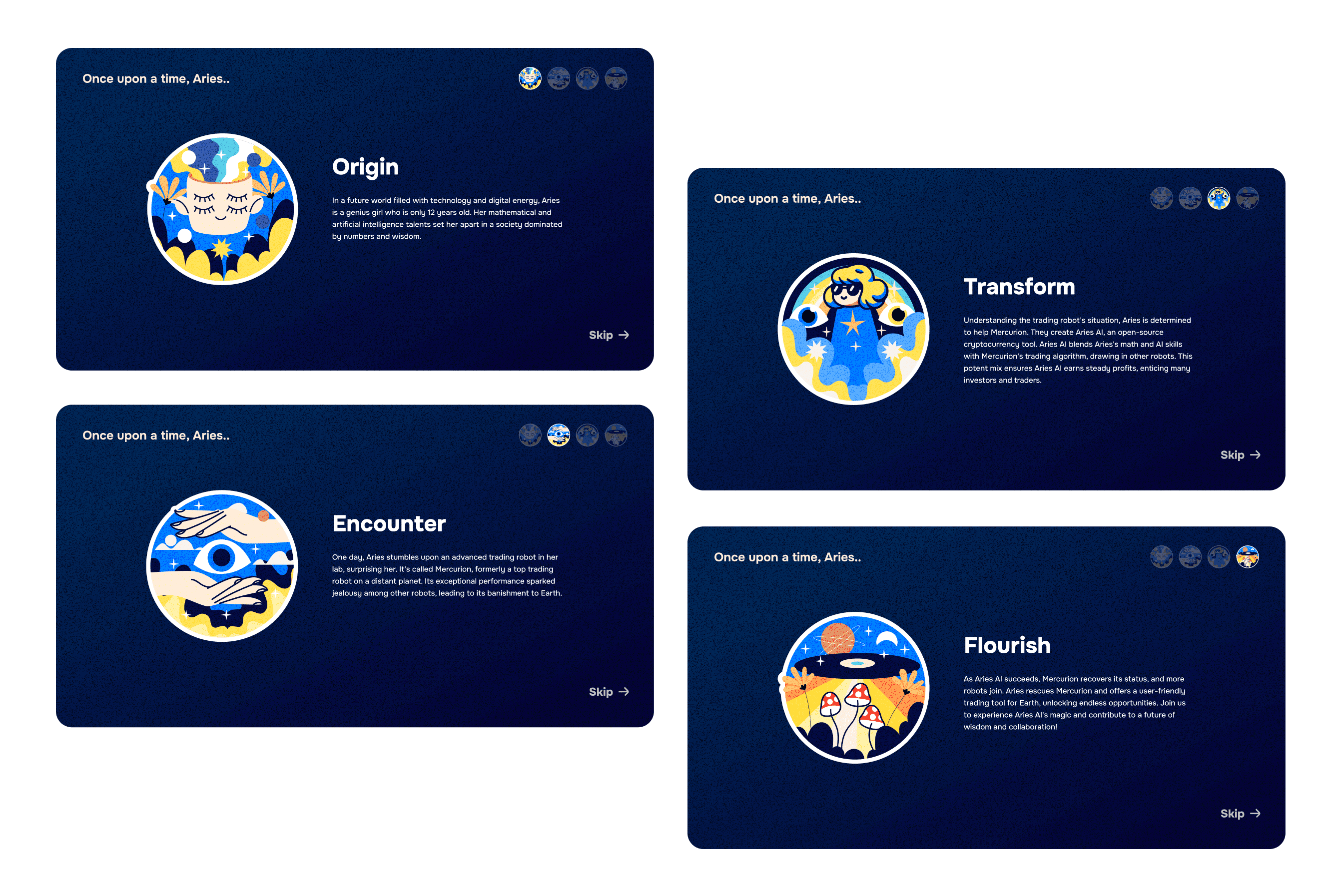 To set the stage, I introduced Aries—a character with her own origin story—through the landing page to spark curiosity and invite users into the product world.