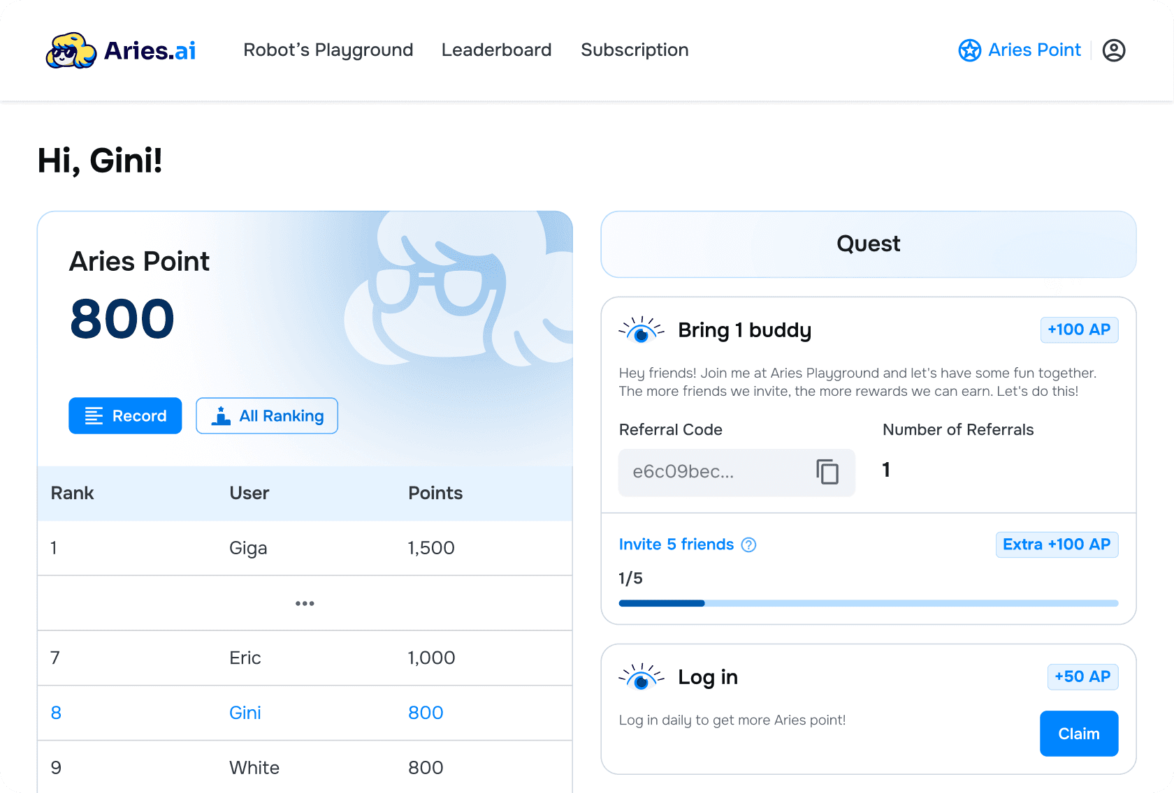 The Aries Point system rewarded daily logins, creating robots, or inviting friends, encouraging users to return.