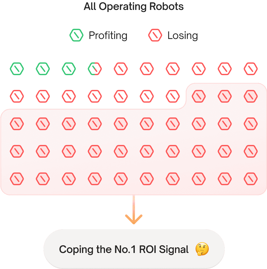 93% of robots lost money — and surprisingly, 70% of those losses came from the platform’s top ROI signal.